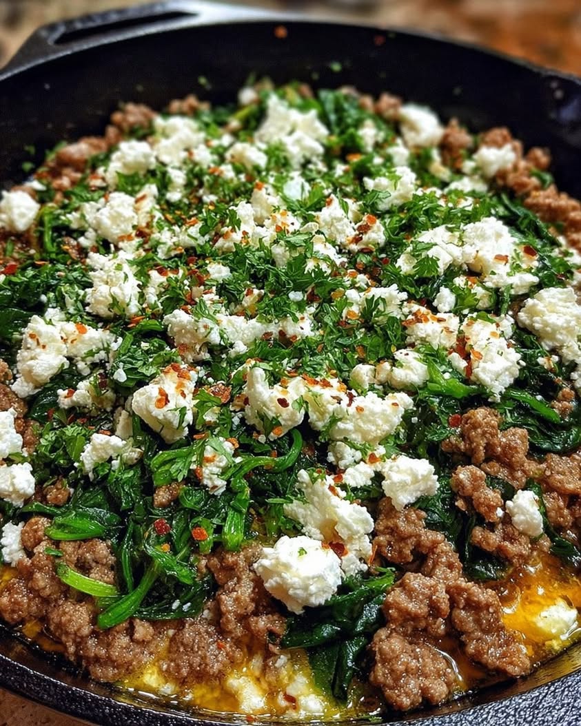 Ground Beef and Spinach Skillet with Feta: Creamy, Savory, and Ready in 20 Minutes!