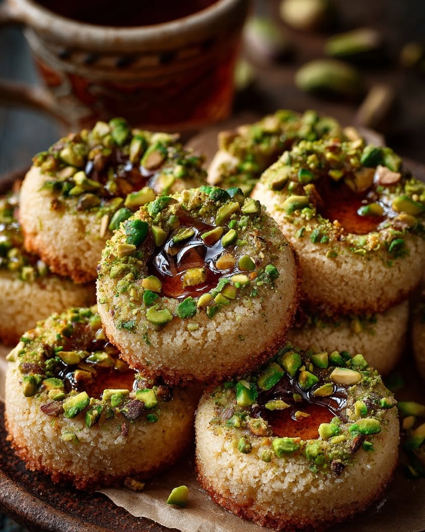 - Visual Appeal: These cookies are simply beautiful. Their pale golden bases cradle a shimmering center of amber honey, all speckled with vibrant green pistachio bits. They look artisan-made and are perfect for gifting or serving on a decorative platter.