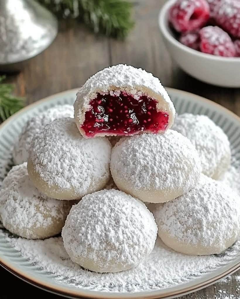 First and foremost, the taste and texture of these raspberry-filled almond snow cookies will captivate your senses. The combination of nutty almond flavor and sweet raspberry creates a sophisticated balance that pleases both children and adults. Additionally, the melt-in-your-mouth texture provides a luxurious eating experience that feels special and celebratory. The powdered sugar coating adds visual appeal and a subtle sweetness that complements the other flavors perfectly. Consequently, every bite delivers complex flavors and satisfying textures that keep you reaching for another cookie.